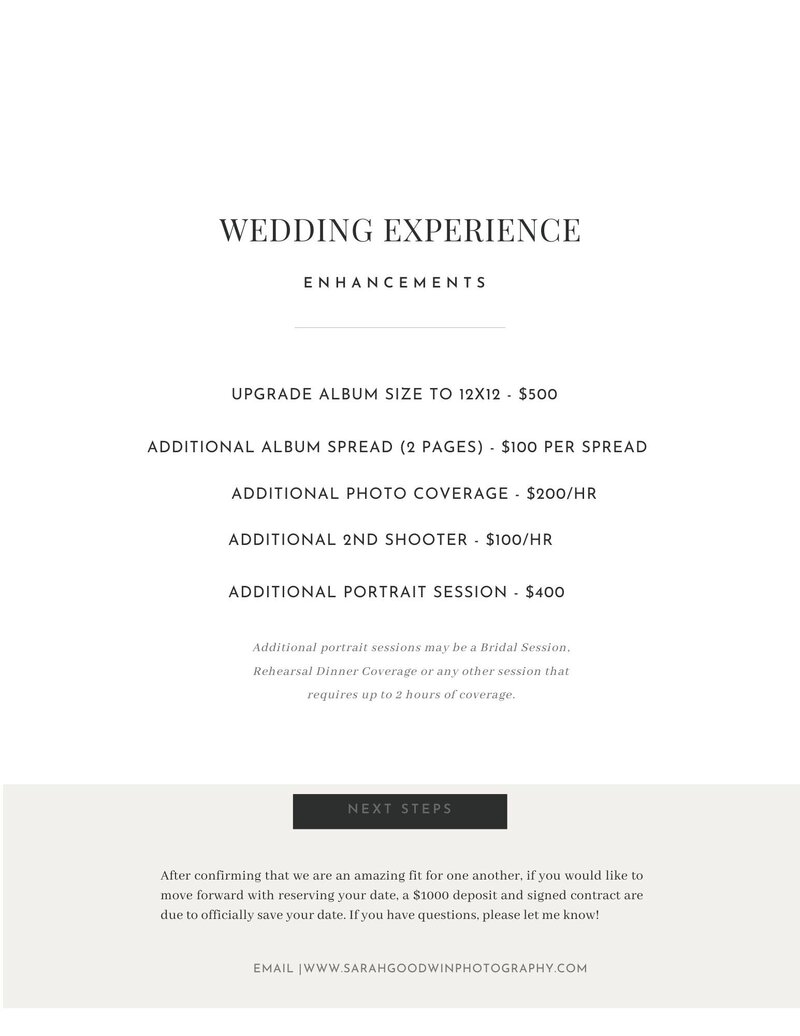 + Four hours of consecutive wedding day coverage